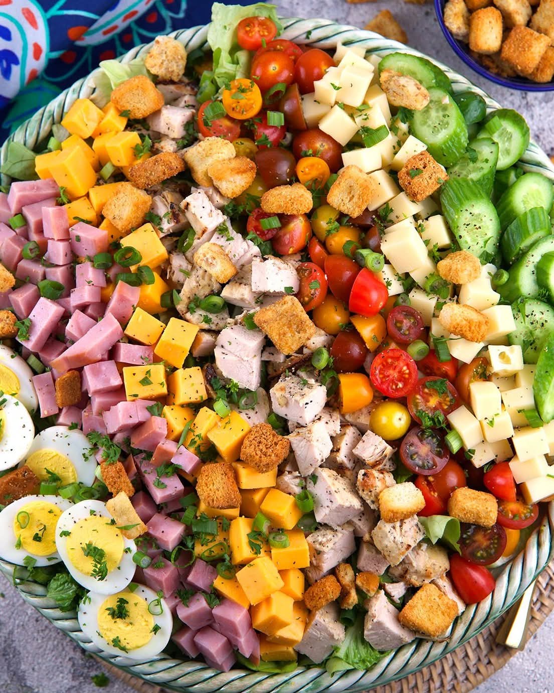 This Chef’s Salad pairs wonderfully with a slice of warm garlic bread or a simple cup of vegetable soup. For a refreshing meal, serve it with a cold glass of iced tea or lemon water.