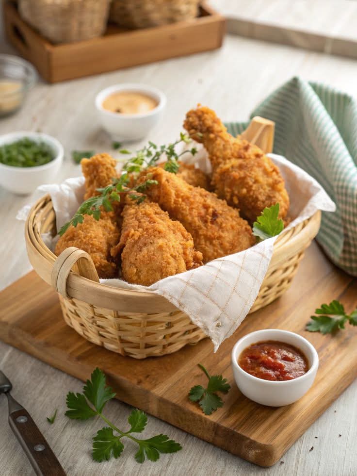 Serve your crispy fried chicken hot with your favorite sides — creamy mashed potatoes, coleslaw, seasoned rice, or even buttery cornbread. The juicy, flavorful meat and crunchy crust make this a meal everyone will crave again and again.