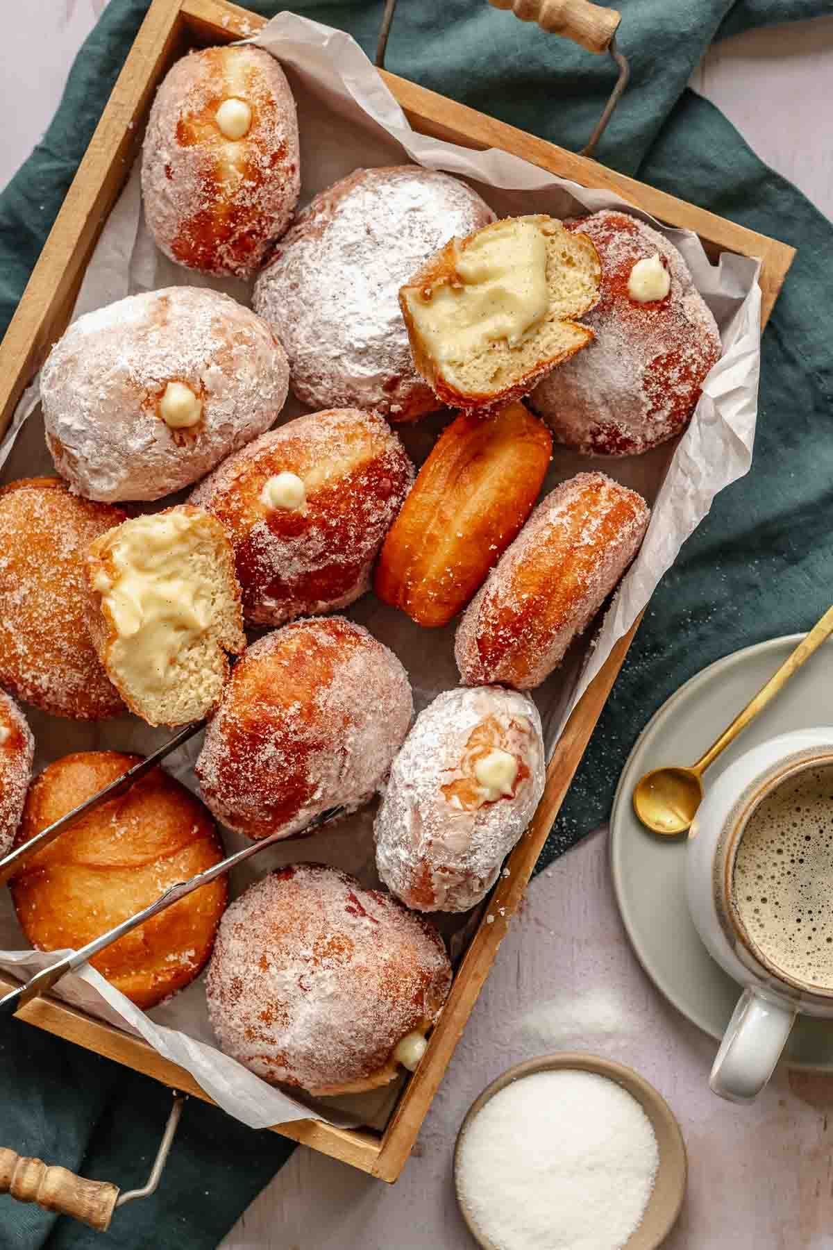 Soft, fluffy, and filled with rich homemade vanilla custard — these donuts are pure perfection!