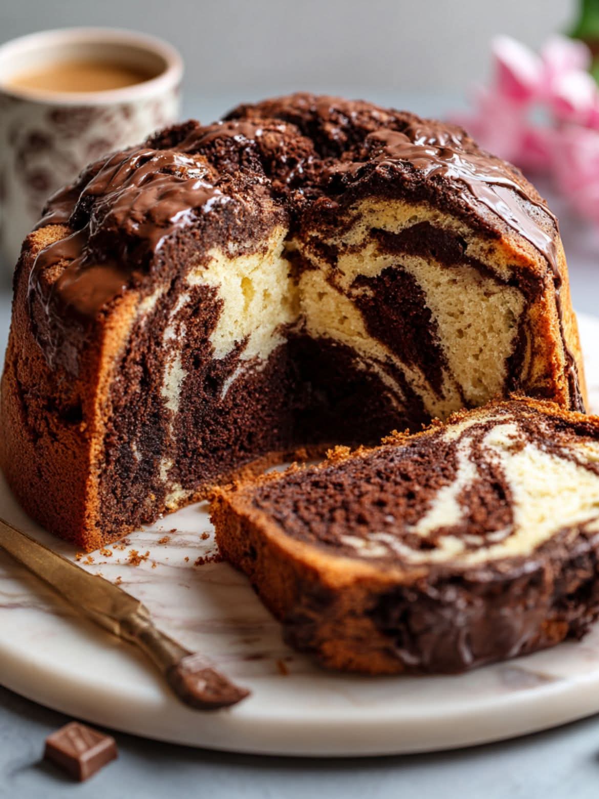 A classic marble bundt cake is the perfect balance of tender vanilla cake and rich chocolate swirls. This version is exceptionally moist thanks to full-fat sour cream and a carefully balanced butter-based batter. The result is a beautifully patterned cake with a soft crumb and a deep, harmonious flavor.