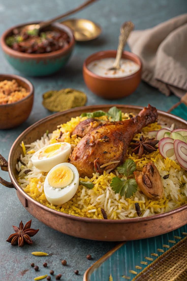 - Low-heat dum cooking ensures fluffy rice and tender chicken without burning.