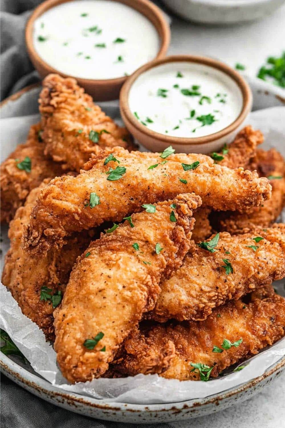 - For extra-crispy tenders, chill the breaded chicken in the refrigerator for 15–20 minutes before frying.