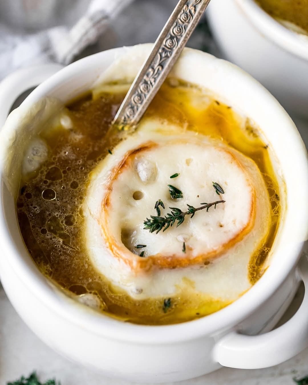 If you don’t have oven-safe bowls, melt the cheese directly on toasted bread in the oven and place the cheesy toasts on top of the soup just before serving.