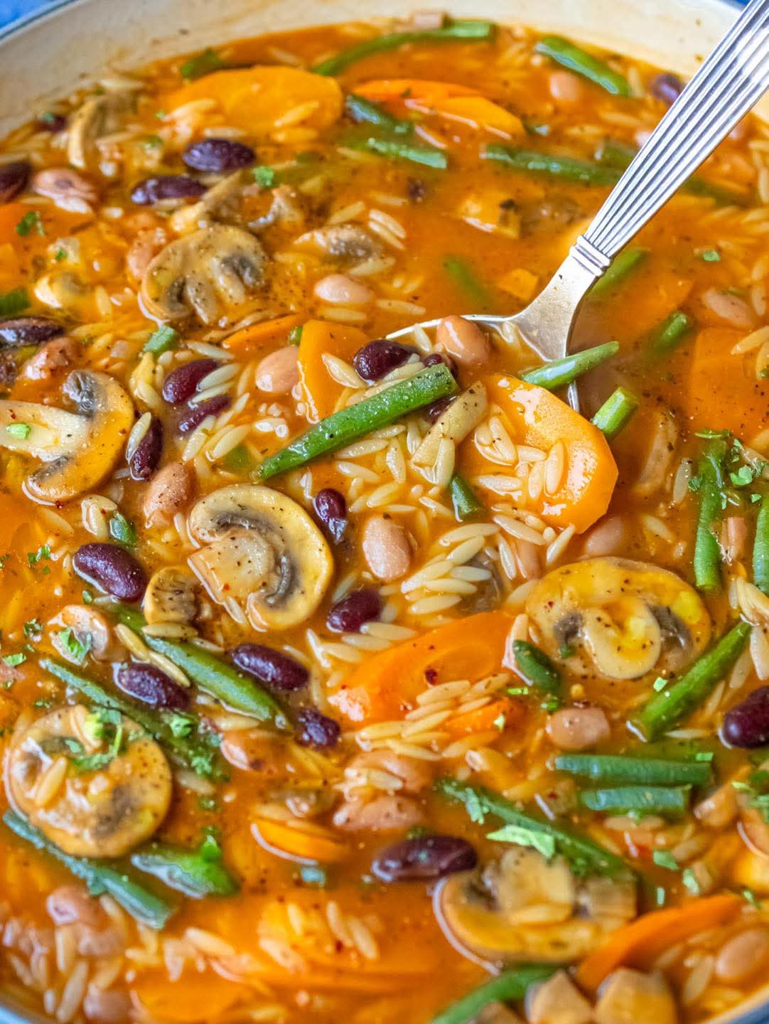 Three-Bean Orzo Soup (Easy Mediterranean One-Pot)