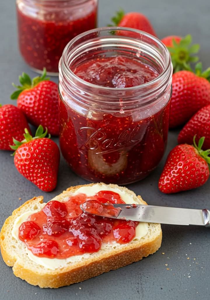 Unlike store-bought jam, this version contains no preservatives or artificial ingredients. The strawberries release their natural juices as they cook, creating a thick, spoonable jam with a vibrant red color and real fruit taste.