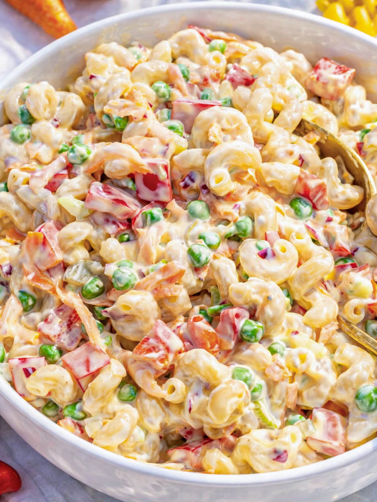 - Creamy texture with much less heaviness than traditional macaroni salad